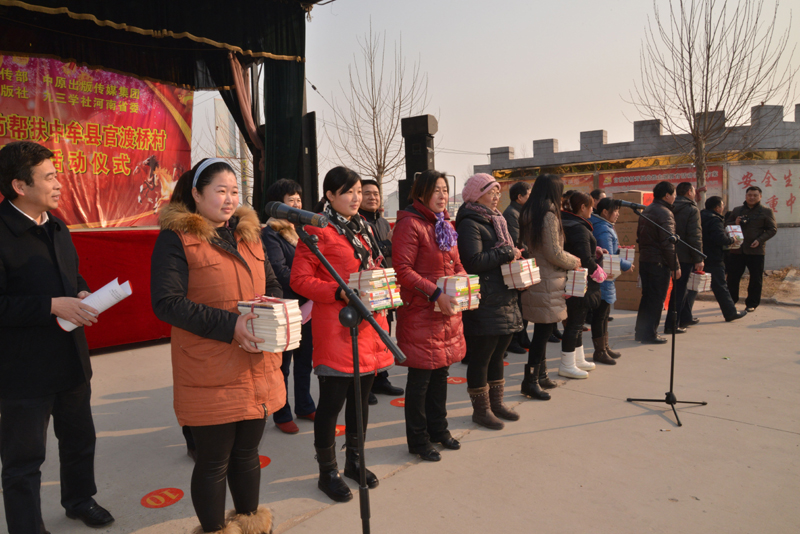 為促進(jìn)農(nóng)村精神文明建設(shè)和城鄉(xiāng)一體化發(fā)展,更好更快地提升公民文明素質(zhì)和社會(huì)文明程度, 2014年1月23日,省委宣傳部牽頭中原出版?zhèn)髅郊瘓F(tuán)、河南人民出版社、省九三學(xué)社等省直單位,冒著冬日嚴(yán)寒來(lái)到了中牟縣官渡鎮(zhèn)官渡橋村,開展幫扶慰問(wèn)活動(dòng),把溫暖和愛心送給農(nóng)民群眾。省委宣傳部機(jī)關(guān)干部十多人參加了慰問(wèn)活動(dòng)。