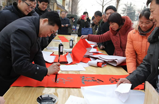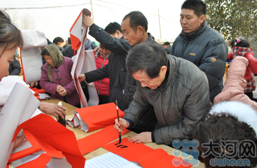 省委宣傳部副巡視員杜瑞明代表省直四家單位講了話,向官渡橋村村民送上節(jié)日的祝福。隨后,慰問(wèn)團(tuán)的領(lǐng)導(dǎo)向官渡橋村農(nóng)民群眾和小學(xué)生贈(zèng)送了文體用品。由省委宣傳部邀請(qǐng)的薛青、郝曉冬等省內(nèi)多位知名演員為村民們表演了歌舞《田野里的春天》、豫劇《朝陽(yáng)溝》選段、相聲《大腕研究》、嗩吶《百鳥朝鳳》等七個(gè)精彩的節(jié)目。在近兩個(gè)小時(shí)的演出中,臺(tái)上演員們精彩的表演,博得群眾的陣陣掌聲。省委宣傳部機(jī)關(guān)黨委專職副書記李憲林、創(chuàng)建處處長(zhǎng)張德偉揮毫潑墨,現(xiàn)場(chǎng)為鄉(xiāng)親們義寫春聯(lián)。省九三學(xué)社邀請(qǐng)的省醫(yī)療專家為鄉(xiāng)親們傳播健康衛(wèi)生知識(shí),現(xiàn)場(chǎng)檢查治療。中原出版集團(tuán)和河南人民出版社為鄉(xiāng)親們贈(zèng)送了科技圖書讓大家過(guò)春節(jié)時(shí)學(xué)習(xí),整個(gè)慰問(wèn)活動(dòng)場(chǎng)面熱烈,氛圍濃厚。