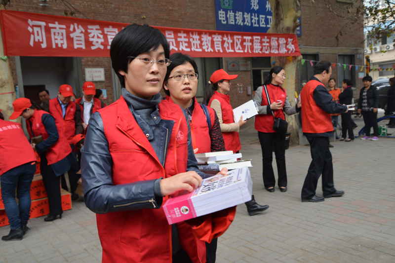 10月31日下午,一場精彩的小型文藝演出在鄭州市緯五路省教育社區(qū)舉行。演出期間,志愿者向現(xiàn)場觀看的居民免費贈送圖書、報紙和DVD。據(jù)了解,這是省委宣傳部開展的黨員志愿服務(wù)進(jìn)社區(qū)活動。