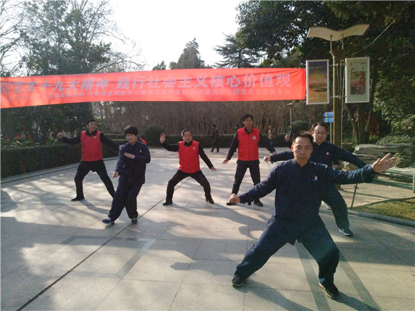 此外,多才多藝的志愿者們還在現(xiàn)場(chǎng)開展了歌曲演唱、太極拳表演、幸福門拍照等活動(dòng),吸引了群眾的駐足觀看和積極參與。